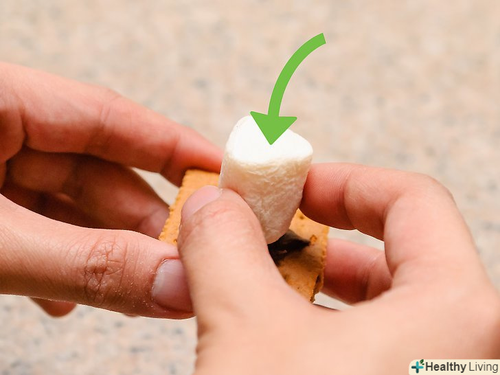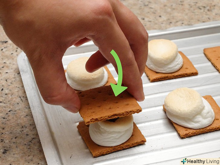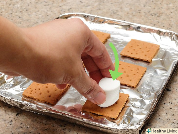 Додайте зефір поверх кожної половинки крекеру.покладіть зефір на крекер плоскою стороною вниз, щоб він не скотився з нього.