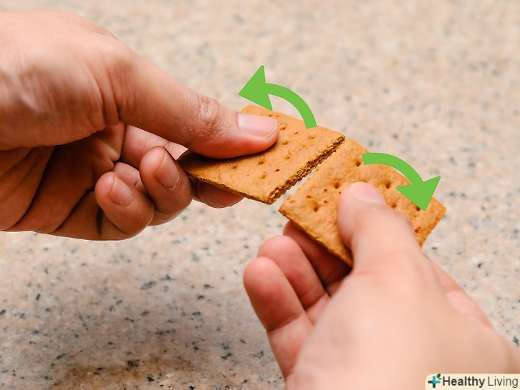 Розламайте навпіл кілька крекерів Грема.розламайте стільки крекерів, скільки хочете приготувати сморов. Для приготування одного смора вам знадобиться один крекер Грема.