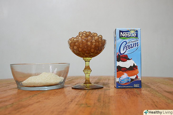 Підсолодіть за смаком і їжте з вершками або просто так.перлини тапіоки смачні самі по собі, але їх можна додавати і в інші страви і напої, наприклад, в чай.- Якщо ви хочете зробити солодкі перлини для чайного напою з тапіоки (bubble tea), приготуйте простий сироп, змішавши 125 мл води і 100 г цукру, і замочіть перлини в ньому.