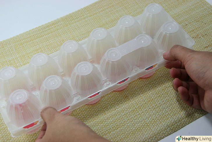 Велику плоску коробку для яєць (без кришки) помістіть плазом на робочу поверхню.