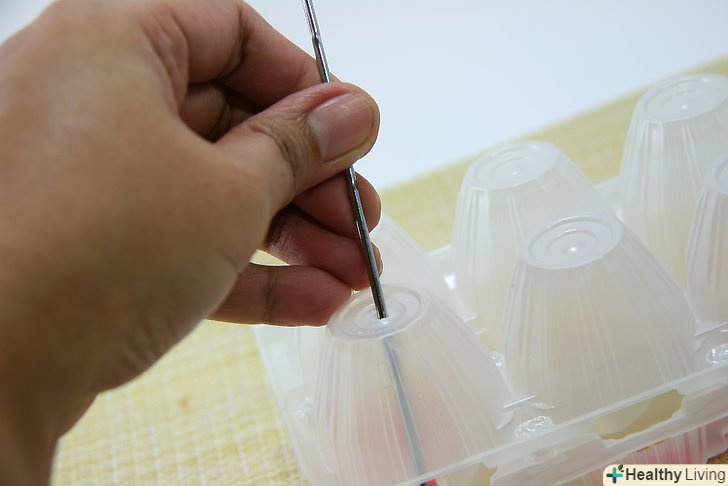 Проткніть отвір за допомогою металевої шпажки в центрі кожної формочки для яєць.перевірте паличкою від льодяника ширину отвору.