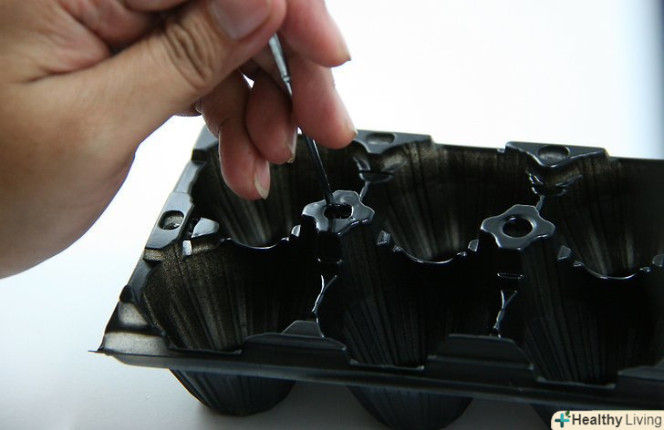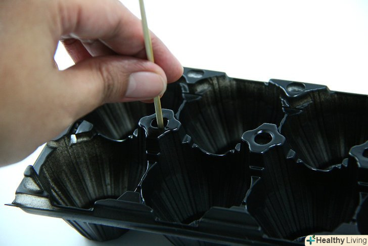 Металевою шпажкою між кожною формочкою для яєць проколіть отвір в кожному горбку на упаковці.
