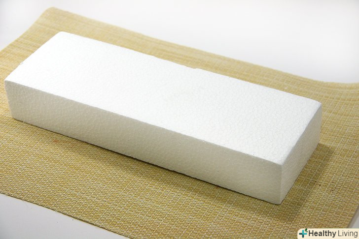 Знайдіть хорошого розміру шматок пінопласту, можливо, від непотрібної упаковки.піна повинна щільно осісти і бути в змозі витримати вагу торта; найкраща форма - це великий квадрат.