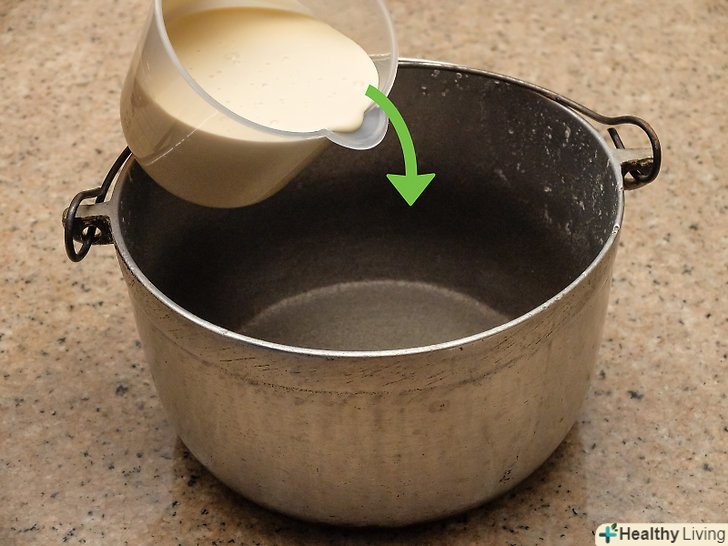 Перелийте вершки в каструлю з товстим дном і кришкою.головне, про що варто хвилюватися, це як високо піднімуться вершки щодо країв каструлі. Спробуйте залишити приблизно 2-7 см вільних в каструлі для того, щоб вершки не виливалися з неї в процесі запікання.[1]