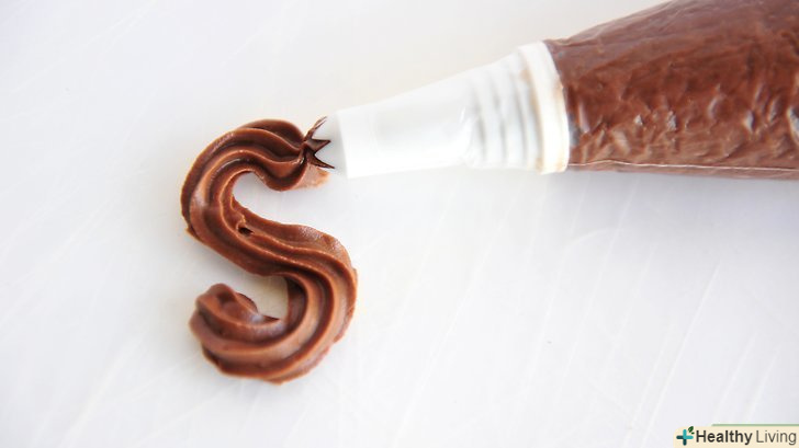Спробуйте, для початку, нанести Айсінг на тарілку.утримуючи мішок однією рукою, а наконечник інший, почніть здавлювати мішок, здійснюючи кругові рухи наконечником. Переконайтеся, що Айсінг видавлюється поступово, і що ви можете контролювати його кількість.- Якщо Айсінг видавлюється нерівно-перевірте, чи щільно закручена насадка.