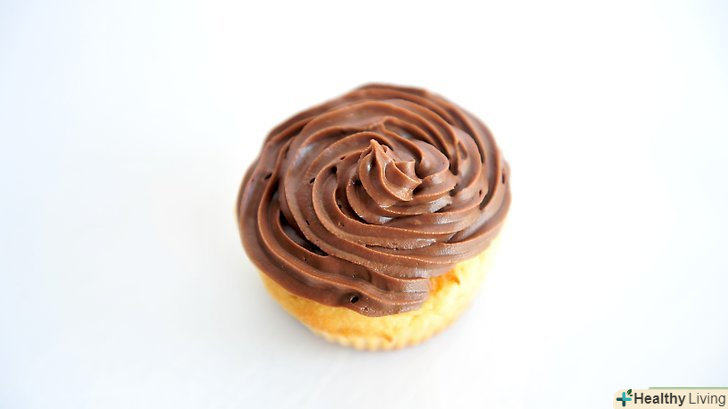 Нанесіть Айсінг у вигляді спіралі на ваші кекси.розташуйте насадку для айсинга по середині над кексом. Зробіть середину. Далі, злегка натискаючи на мішок, почніть наносити Айсінг з країв кексу, рухаючись по спіралі до центру. Наносите Айсінг до самої середини. Як тільки дійдете до неї, перестаньте видавлювати Айсінг і акуратно підніміть насадку наверх, щоб зробити красиву верхівку.- Якщо вас не влаштував результат в перший раз, просто зніміть Айсінг з кексу, помістіть його назад в мішок і спробуйте ще раз. Будьте обережні-не зніміть в місці з айсінгом шматочки кексу.