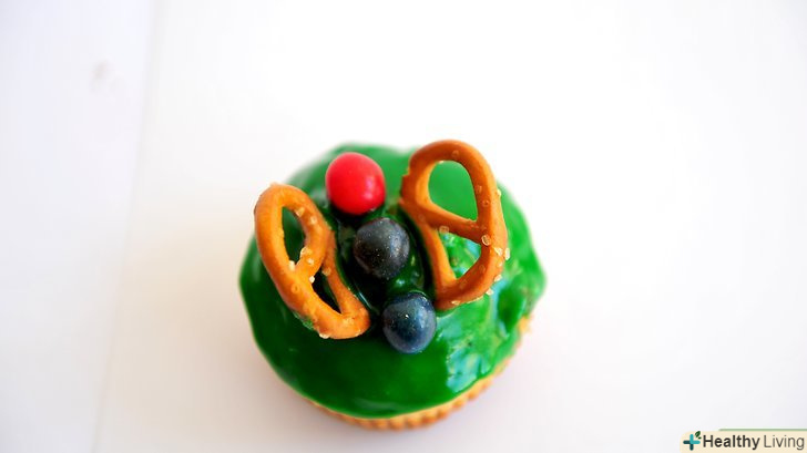 Зробіть кекси-метелики.використовуйте половинки кренделя і шоколадні цукерки, щоб створити мініатюрних метеликів на ваших кексах. Як тільки ви спечете і заллєте кекси глазур'ю, використовуйте цукерки як тіло метелика, а половинки кренделя як її крила.