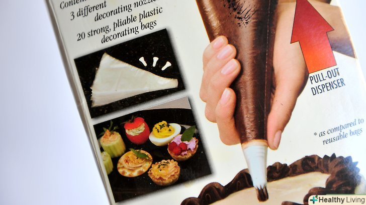 - Зробіть власний кондитерський мішок, прорізавши отвір в нижній частині пластикового пакета для бутербродів. Ви так само зможете прикріпити насадку для айсинга до саморобного кондитерського мішка.