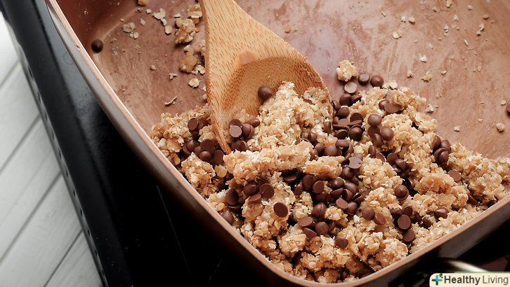 Відставте миску з плити і додайте шоколадну стружку.ви також можете використовувати шматочки шоколаду. Використовуйте веганський або безлактозний шоколад. Ретельно перемішайте, щоб шоколадна стружка була рівномірно розподілена по всьому тесту.