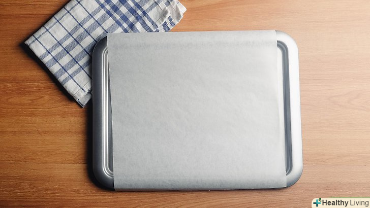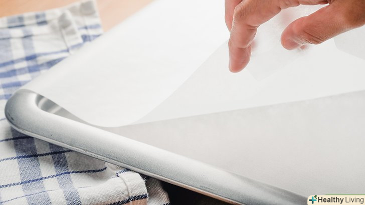 Застеліть деко пергаментним папером.якщо у вас немає пергаментного паперу, можна використовувати вощений папір. Застеліть деко вощеним папером і прикріпіть її до нього, щоб ви могли викласти на нього печиво. Завдяки цьому папір з печивом не зісковзне з дека.