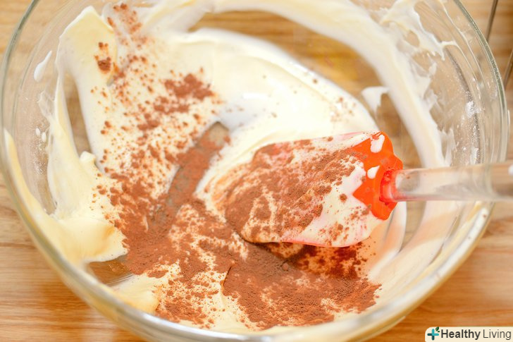 Додайте шоколад.додайте 1/4 склянки якісного какао-порошку і 6 столових ложок цукру, щоб відтінити гіркоту шоколаду. Цю суміш необхідно потримати в холодильнику протягом, принаймні, години, щоб какао правильно розчинилося.