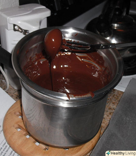 Коли шоколад буде готовий, у вас утворюється тонкий верхній шар.помістіть яйця на піднос з папером для випічки і поставте в прохолодне місце. Якщо ви будете вмочати занадто швидко, а потім відразу класти яйця на піднос, шоколад стече по краях.- Таку прикрасу можна зробити, Якщо шоколад ще м'який. Ви можете додати горіхи абококосову стружку (або навіть присипати порошком какао або тертим шоколадом). Також коли яйця охолонуть, ви можете використовувати інші декоративні елементи, наприклад загорнути їх в золотисту або сріблясту фольгу. Можете додати білий шоколад з невеликою кількістю харчового барвника.
