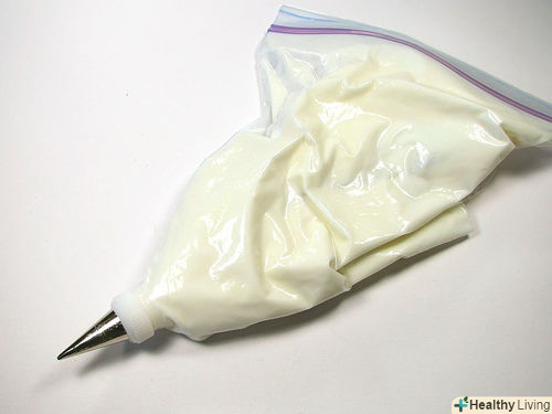 - Склейте половинки королівської глазур'ю.Налийте глазур в кондитерський мішок. Вилийте її по краях кожної з половинок. Потім стисніть дві половинки і видаліть зайву начинку.