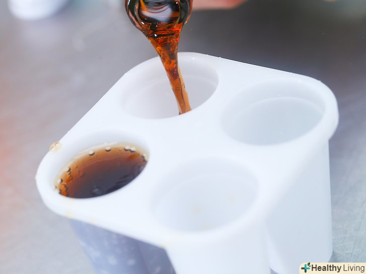 Акуратно налийте напій у форми для ескімо.заповніть кожну форму. Якщо у вас немає форм для ескімо, замість них можете взяти паперові стаканчики або лотки для льоду.- У разі використання лотків, з зубочисток ви можете зробити палички для морозива. Оберніть лоток поліетиленовою обгорткою і в кожну чашечку покладіть по дві зубочистки. Між зубочистками має бути невеликий простір.