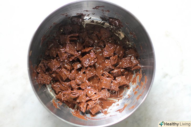 Залийте шоколадний мікс поверх злаків і перемішайте.