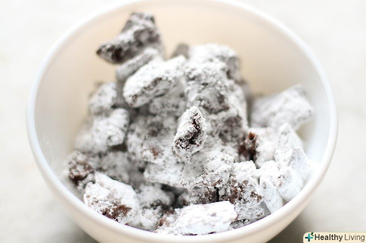 Як тільки злаки покриються шаром описаної вище маси і охолонуть, помістіть їх з цукровою пудрою в пакет. Запечатайте пакет і струсіть.
