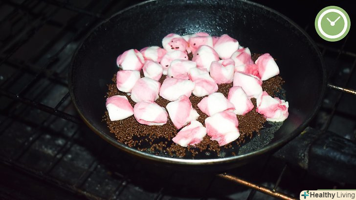 Поставте сковороду назад в духовку.зачекайте 5-7 хвилин, поки зефір розплавиться. Суміш придбає золотисто-коричневий відтінок і зверху покриється скоринкою, всередині ж вона буде м'якою і тягучою.- Якщо ви хочете, щоб суміш була більш твердою і хрусткою, на кілька останніх хвилин додайте вогонь. Слідкуйте за Сковородою, щоб суміш не підгоріла.
