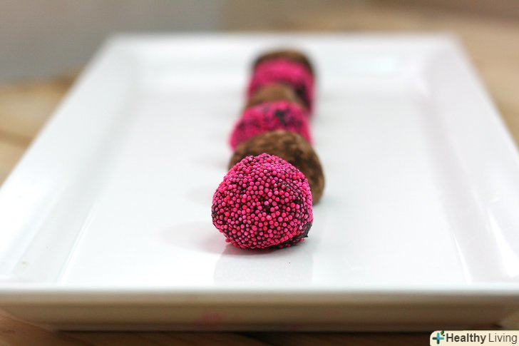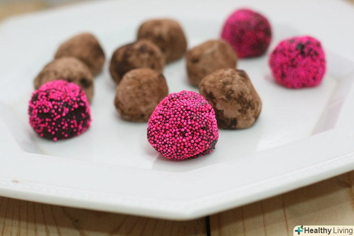 Покрийте трюфелі оболонкою.Обваляйте цукерки в какао-порошку, подрібнених горіхах, кольоровий обсипання або в іншому топінгу на ваш вибір. Покривайте трюфелі оболонкою рівномірно з усіх боків.