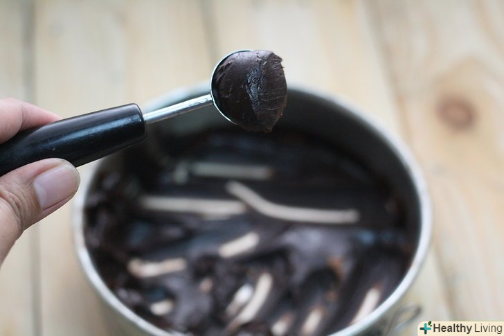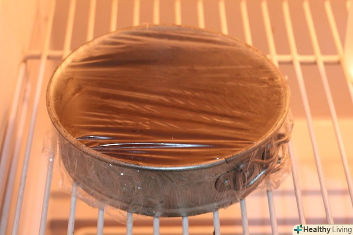 Дайте шоколаду трохи охолонути.вилийте його на деко, залиште ненадовго на столі, потім ще раз перемішайте, накрийте харчовою плівкою і поставте в холодильник. Охолоджуйте шоколад в холодильнику 2 години.[1]- Перевірте, чи повністю охолов шоколад перед тим, як приступати до наступного кроку. Обробляти теплий шоколад дуже важко.