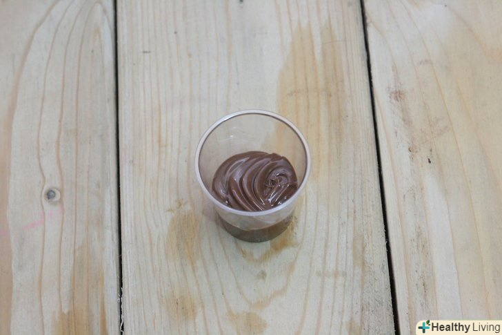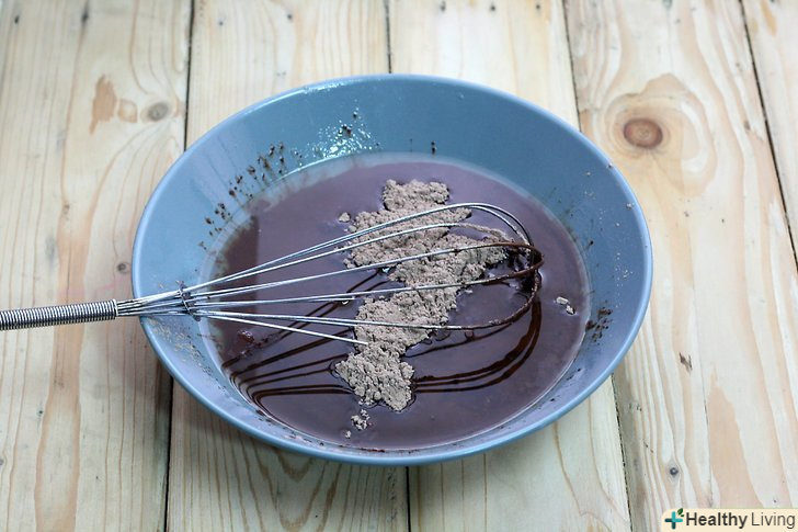 Розтопіть какао-масло і підсолоджувач.покладіть какао-масло та підсолоджувач (будь то мед, кленовий сироп або нектар агави) у миску. Розігрівайте їх в мікрохвильовій печі до тих пір, поки какао-масло не розтопиться і поки всі інгредієнти не змішаються до однорідності. [2]