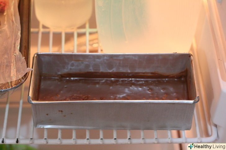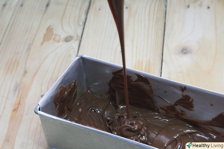 Розлийте шоколад у форми.ви можете використовувати формочки для цукерок, або просто налити гарячу шоколадну суміш в невелике деко або форму для хліба.