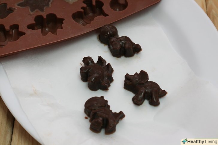 Дайте шоколаду охолонути і застигнути.залиште формочки або на столі, або поставте їх в холодильник. Шоколад повинен повністю охолонути перед тим, як ви будете звільняти його з формочок.