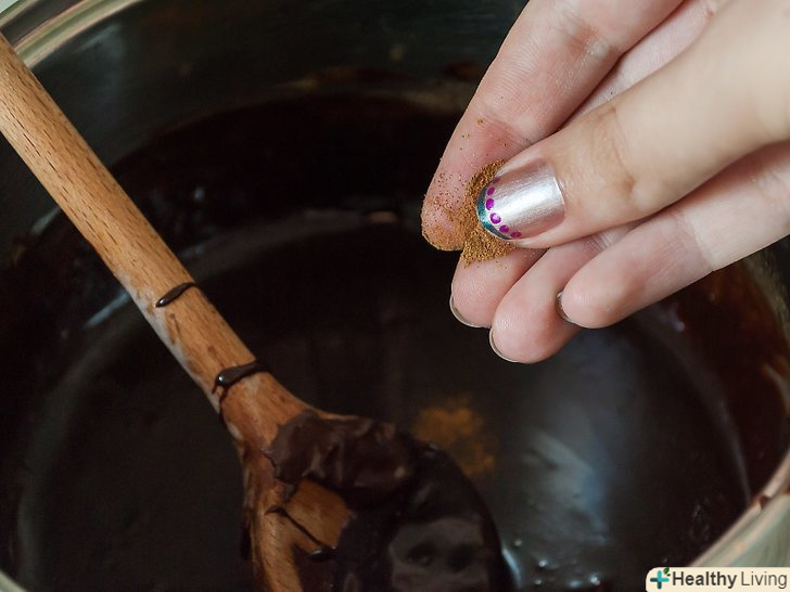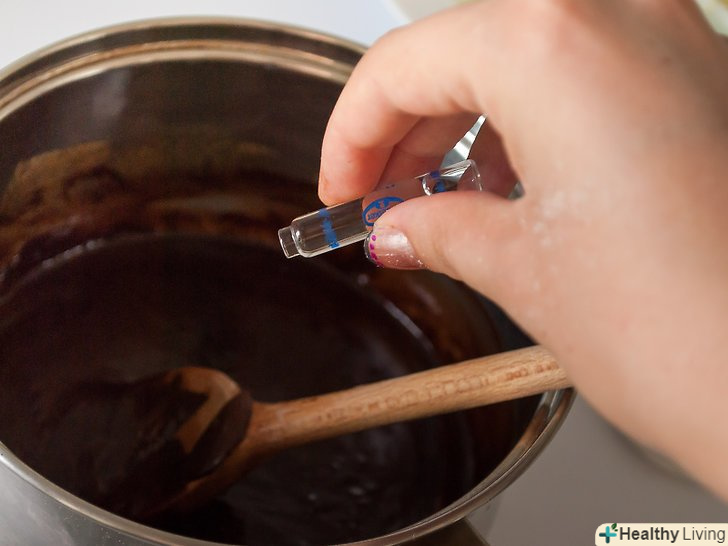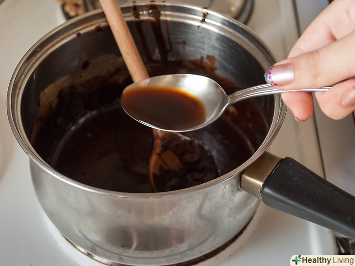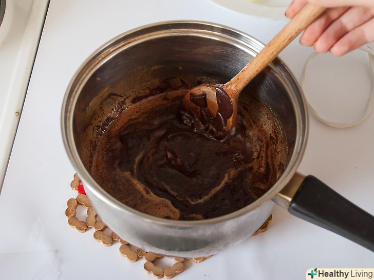 Додайте шоколад.гострим ножем наріжте шоколад. Зніміть каструлю з вогню і додайте туди нарізаний шоколад. Безперервно збивайте, поки шоколад не розтане.