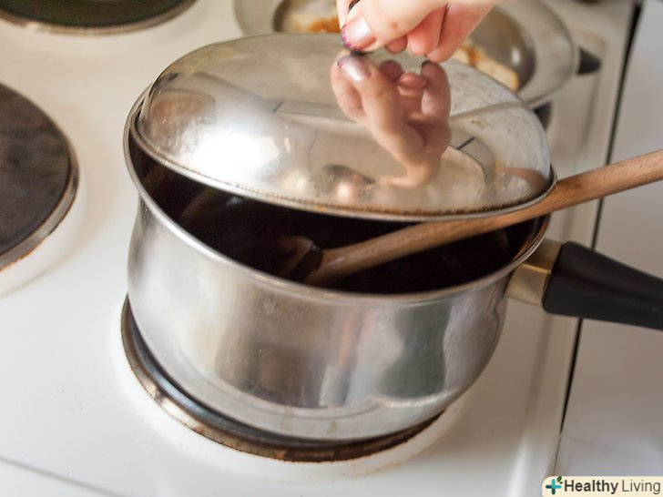 - Збільште вогонь і варіть, поки сироп не стане глибокого бурштинового кольору. Не перемішуйте суміш, а обертайте. Використовуйте вологу щітку, щоб зчистити сироп зі сторін каструлі.