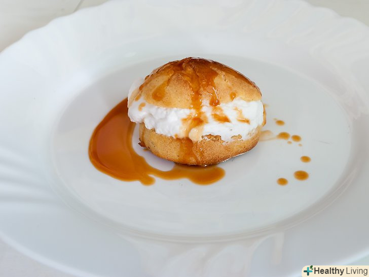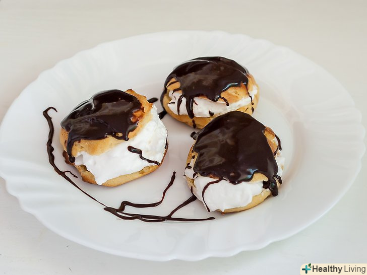 Наповніть начинкою.покладіть ложку збитих вершків на одну половинку профітроля, потім накрийте другий.- Крім того, можна використовувати кондитерський мішок, щоб "впорснути" вершки безпосередньо в середину профітроля.
