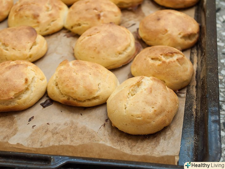 Випікайте профітролі.помістіть деко в духовку, попередньо розігріту до 220 ºС. Випікайте протягом 15-20 хвилин, поки профітролі не стануть золотисто-коричневого кольору.- Проколіть кожен профітроль, а потім поверніть в духовку для просушування протягом 3 хвилин, залишивши дверцята духовки прочиненими.