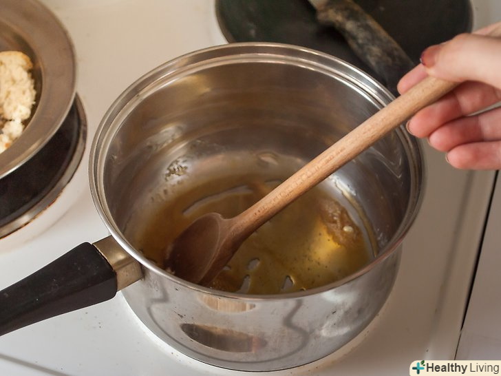 Нагрійте цукор.нагрійте цукор в товстостінній каструлі на середньому вогні, помішуючи виделкою. Коли цукор почне плавитися, перестаньте заважати і готуйте, обертаючи іноді каструлю, щоб цукор рівномірно плавився. Цукор буде готовий, коли стане темно-жовтого кольору.