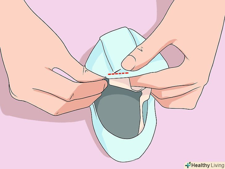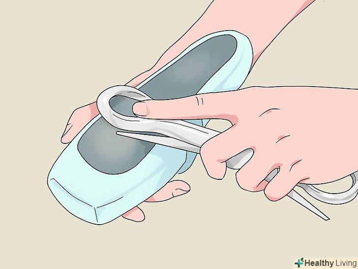 Видаліть тверду ділянку з області п'яти.на п'яті пуантів є твердий ділянку, який допомагає пуантам тримати форму. Якщо він вам заважає і ви хочете зробити пуанти більш м'якими, видаліть його. Це можна зробити руками або за допомогою плоскогубців.[25]