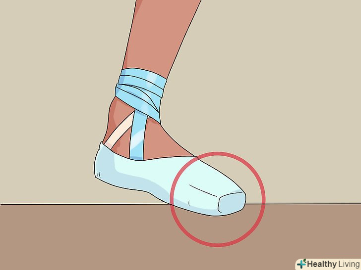 Розм'якшіть складки тканини під носком пуантів, щоб пуанти не видавали зайвих звуків.тканина підгинається під підошву в області носка, і складки, які утворюються в результаті цього, можуть видавати звуки під час танцю. Деякі танцюристи б'ють пуанти об тверду поверхнею, щоб складки стали м'якше.[22]- Знайте, що така підготовка може прискорити знос пуантів.