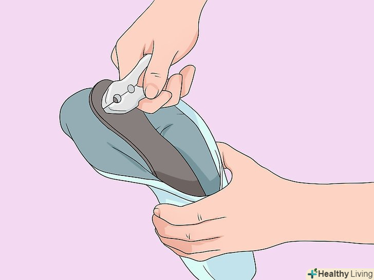 Подряпайте підошву, якщо вам потрібно, щоб пуанти не ковзали.це можна зробити металевою губкою або будь-яким абразивним інструментом. Завдяки цьому зчеплення пуантів з підлогою покращиться. Можна також зробити глибокі подряпини ножицями.[21]