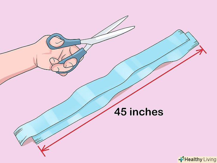 Розріжте стрічку навпіл.купуйте спеціальну стрічку в магазині товарів для балету. Коли ви розріжете її навпіл, кожен з відрізів матиме довжину приблизно 115 сантиметрів.[5]