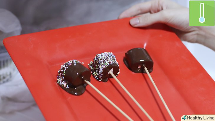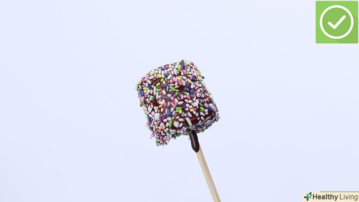 - Якщо хочете, можна додати кондитерську обсипання, маленькі шматочки шоколаду, або горішки. Посипте їх зверху на обтічний зефірку шоколад.