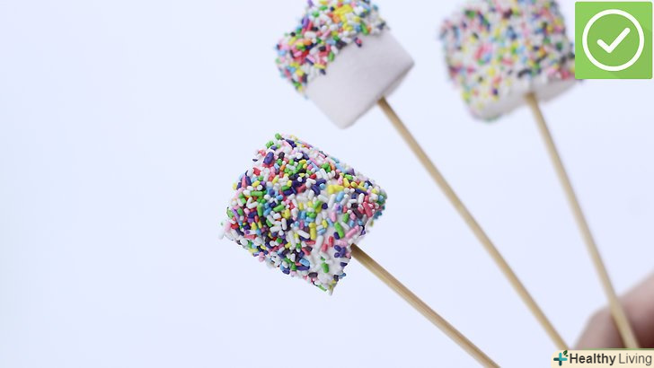 Купуйте пачку м'якого жувального зефіру.чим більше Зефірка, тим смачніше цукерка! Купуйте дерев'яні палички для морозива або великі зубочистки.- Наткніть зефір на паличку.