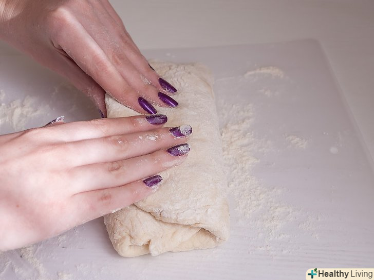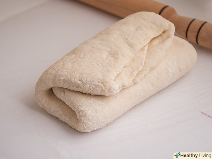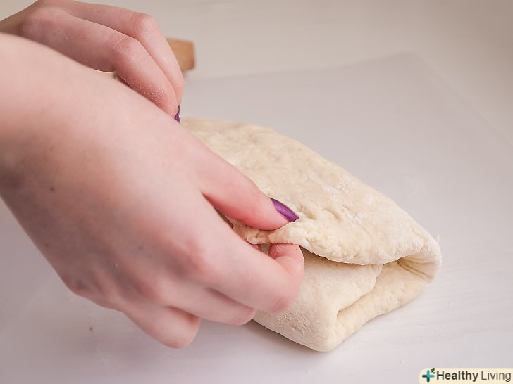 Переверніть тісто.згорніть тісто три рази, як конверт. Спочатку загорніть правий край в середину, а потім лівим краєм накрийте два шари тіста, що вийшли в середині.