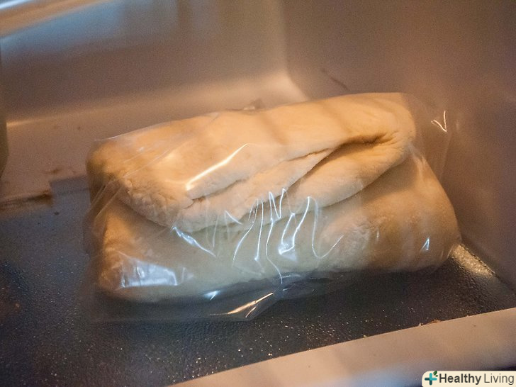 Охолодіть тісто.загорніть тісто в харчову плівку або вощений папір. Дайте тесту постояти в холодильнику ще 2 години. Можна залишити на ніч в холодильнику, проте поставте зверху прес, щоб тісто не піднялося.