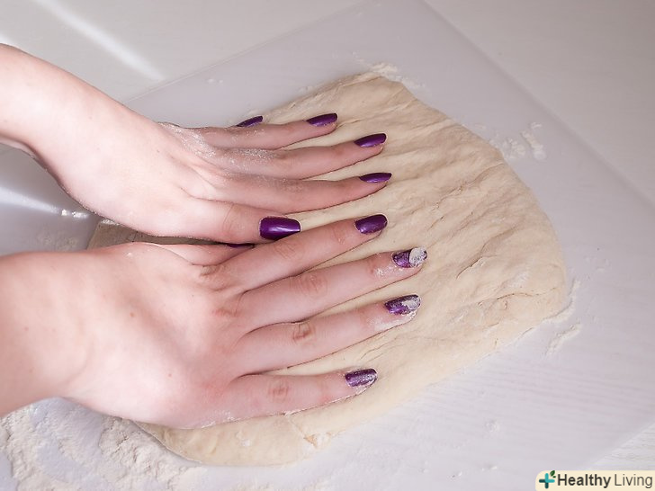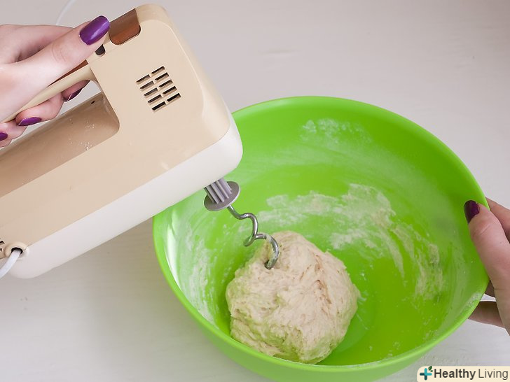 Вимісіть тісто.якщо ви використовуєте міксер, продовжуйте їм вимішувати тісто ще пару хвилин після того, як тісто стало однорідним. Якщо ви вимішуєте тісто вручну, добре пам'ятайте його ще 8-10 разів. Тісто має вийти м'яким і пластичним.