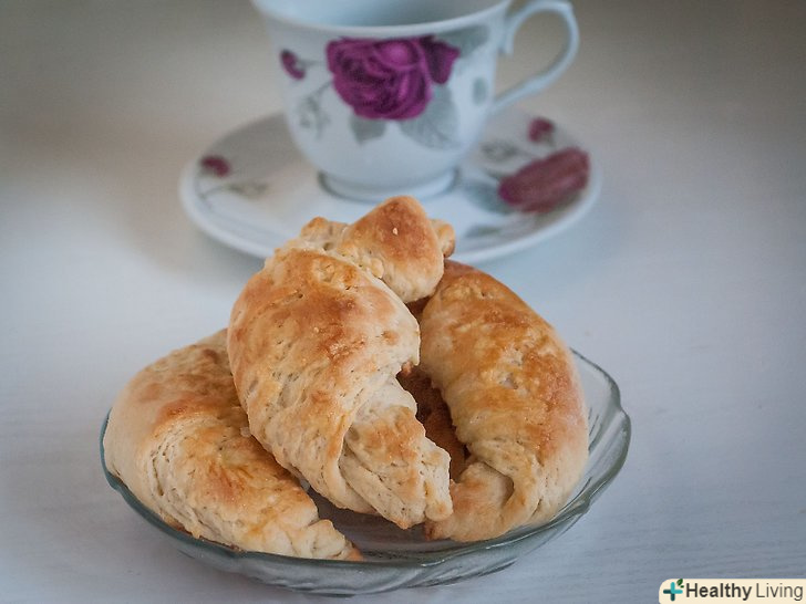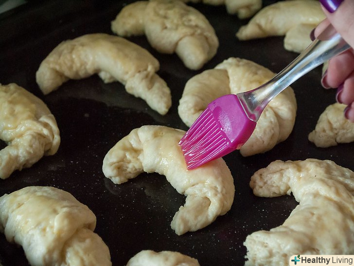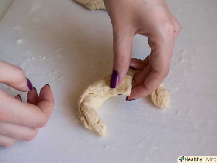 - Якщо ви хочете отримати закруглені круасани, просто з'єднайте кінці круасана і защипніть їх, перш ніж випікати. Така форма буде навіть зручніше, якщо ви збираєтеся розрізати круасан і використовувати як основу для бутерброда.
