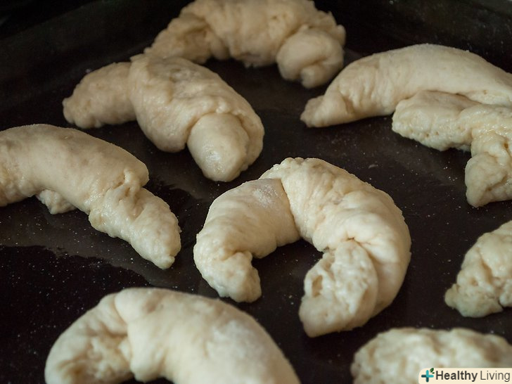 Дайте круасанам піднятися.накрийте круасани кухонним рушником і залиште їх підніматися на годину.