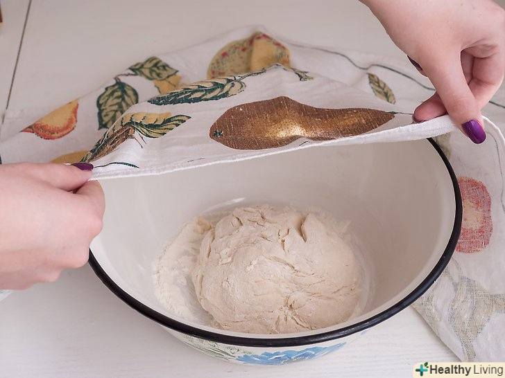 Дайте тесту піднятися.викладіть тісто в чисту миску, присипану борошном. Борошно не дозволить тесту прилипнути. Накрийте миску харчовою плівкою або рушником. Тісто має піднятися за 1-2 години. Як тільки тісто збільшилося в обсязі в два рази, переходите до наступного кроку.- Зробіть надріз на тесті у вигляді хреста. Це допоможе тесту піднятися трохи швидше. Розмір Хреста: 5 х 5 см. поставте тісто в тепле місце, щоб воно швидше піднялося.