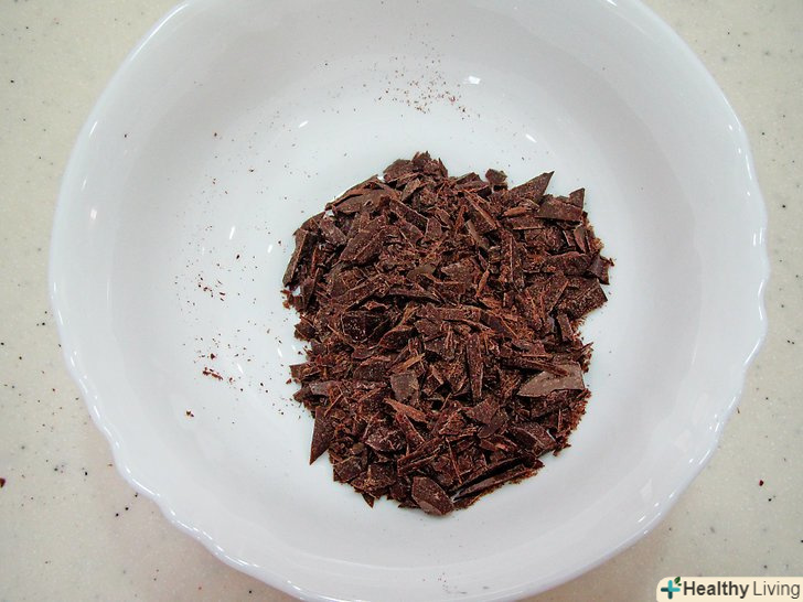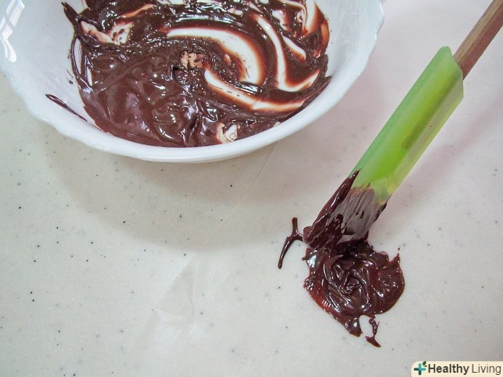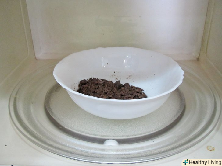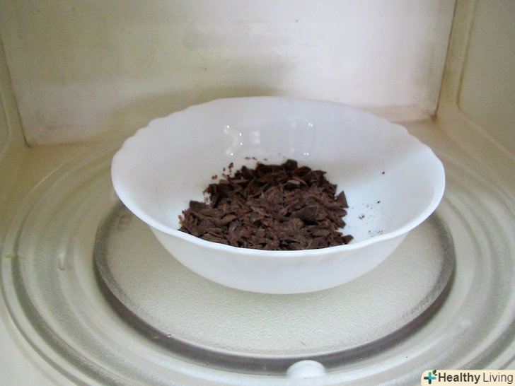 Розтопіть шоколад в мікрохвильовій печі.встановіть середню потужність і топіть шоколад протягом 1 хвилини, після чого відразу розмішайте. Чекати, що він відразу розплавиться, не варто. Продовжуйте повторювати цей процес, поки шоколад не розтане. А це станеться тоді, коли шоколад буде стікати з ложки, як сироп.- Не перестарайтеся і не перетримайте шоколад в мікрохвильовій печі. 1 хвилина на середній потужності вказана не просто так. Якщо ви будете перевіряти його через певні проміжки часу, помішуючи кожен раз, вам не доведеться переробляти все заново, тому що поспішили і упустили момент. Так що наберіться терпіння!