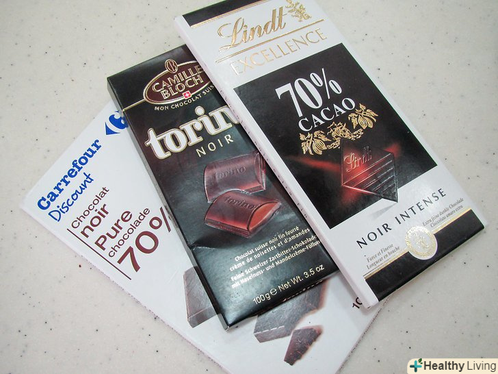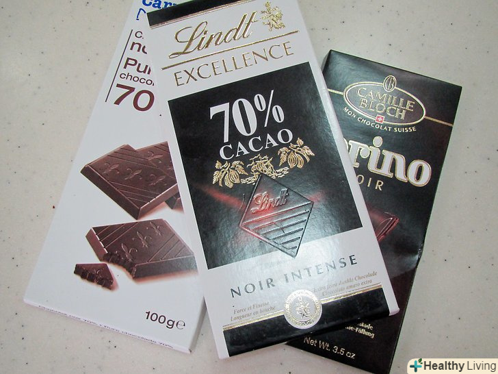 - Можете вибрати шоколад з вмістом 70-75% какао. Якщо відсоток вмісту какао вище, це буде більш гіркий шоколад (але якщо ви любите гіркий, сміливо беріть його). Близько 85 % какао в шоколаді краще підходить для випічки.