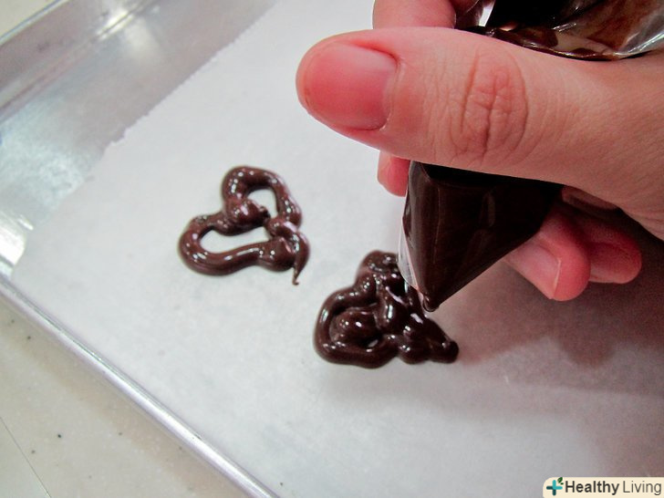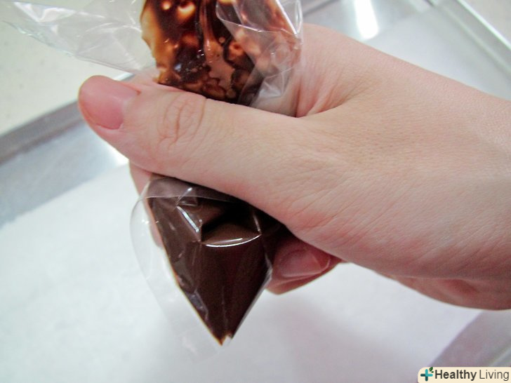 Налийте шоколад в кондитерський мішок.як тільки шоколад розплавиться і стане гладким, його можна перелити в кондитерський мішок. А можете зачерпувати його, якщо хочете.