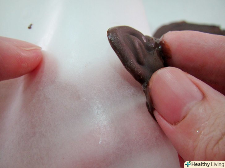 Очистіть вощений папір від шоколаду. і не навпаки. Якщо ви будете знімати шоколад, ви ризикуєте зіпсувати ваші досконалі творіння! Так що беріть форму в руки і обережно починайте знімати папір. Якщо весь процес проведено правильно і все було добре заморожено, то зняття паперу пройде легко і гладко.