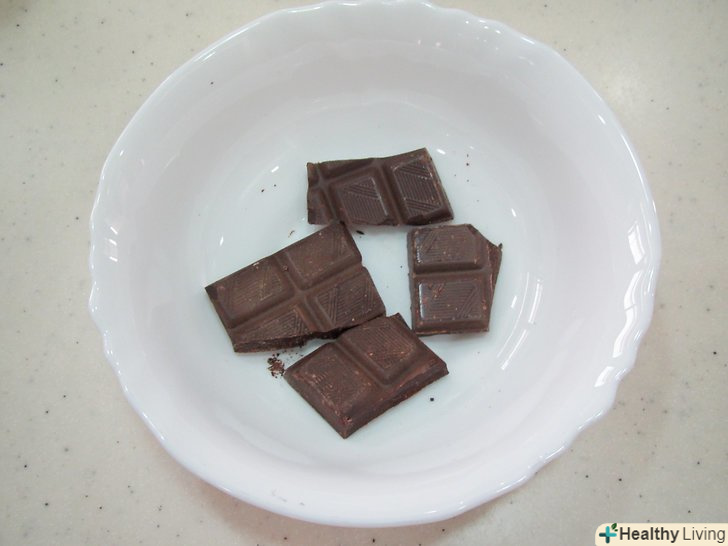 Розламайте шоколадку на шматочки і покладіть їх в миску.Якщо шоколад залишиться одним великим шматком, він не буде танути рівномірно. Це призведе до підгоряння з боків, а в центрі шоколад залишиться холодним. Розламайте шоколад на крихітні шматки, якщо тільки ви не боїтеся забруднити руки.