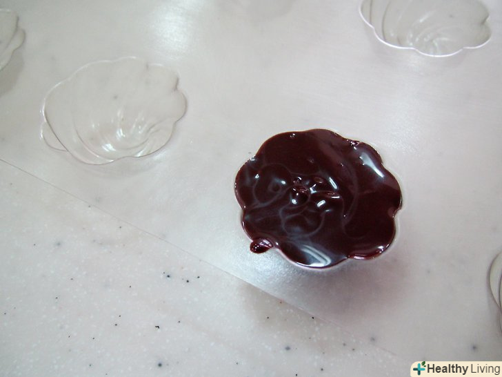- Використовуєте пластикові формочки?вам необхідно злегка дати охолонути шоколаду (зовсім небагато) перед заливкою його в пластикові форми. Помістіть їх на деко з вощеним папером, залийте в них шоколад, а потім помістіть в морозильну камеру.