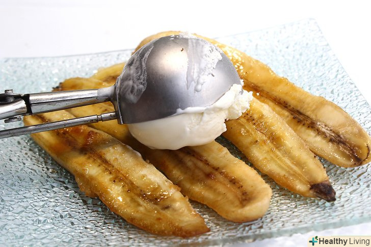 Покладіть по 1 кульці морозива на кожну тарілку.покладіть на тарілки по кульці морозива; можете покласти його прямо поверх бананів, якщо ви не проти, щоб морозиво розтануло швидше. Або ж просто покладіть кульку морозива поруч з бананом. Подавайте блюдо відразу ж, щоб морозиво не розтануло.[11]